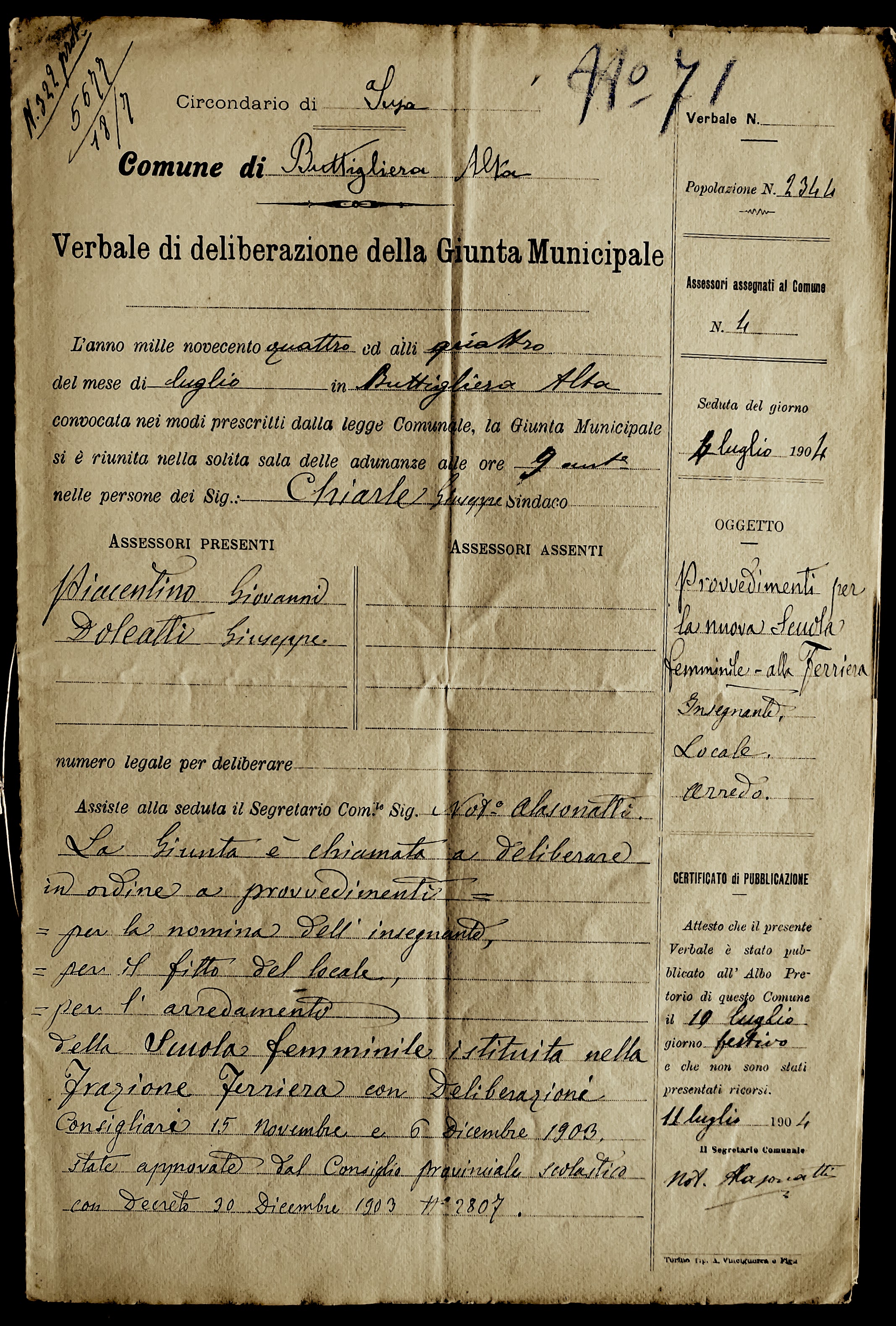 Questo legame favorì l'arrivo dei Vandel, nella prima metà del 1890, a Buttigliera Alta